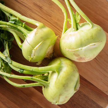 Kohlrabi seeds produce compact, upright plants with a rounded, swollen stem that forms above the...