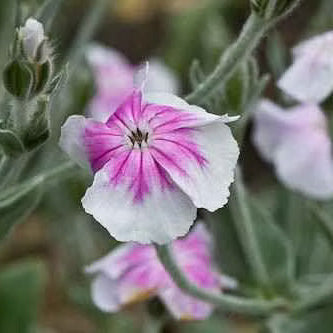 Lychnis Coronaria ‘Angel’s Blush’ is a charming perennial known for its soft pink and white...