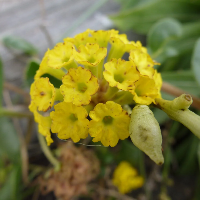 Abronia Latifolia, commonly known as Yellow Sand Verbena, is a hardy coastal plant known for its bright yellow clusters of fragrant blooms. Ideal for sandy and well-drained soils, it thrives in full sun and offers excellent ground cover for gardens and landscapes. This drought-tolerant perennial adds a vibrant touch to coastal or dry garden designs while attracting beneficial pollinators like butterflies and bees.