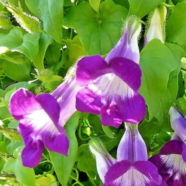 Asarina ‘Joan Lorraine’ is a graceful climbing plant admired for its charming lavender-blue trumpet-shaped blooms and lush green foliage. This fast-growing vine is perfect for hanging baskets, trellises, fences, or garden walls, offering an elegant cascade of color throughout the warm months. Known for its extended blooming period and ease of growth, Asarina brings a delicate yet vibrant look to any garden setting.