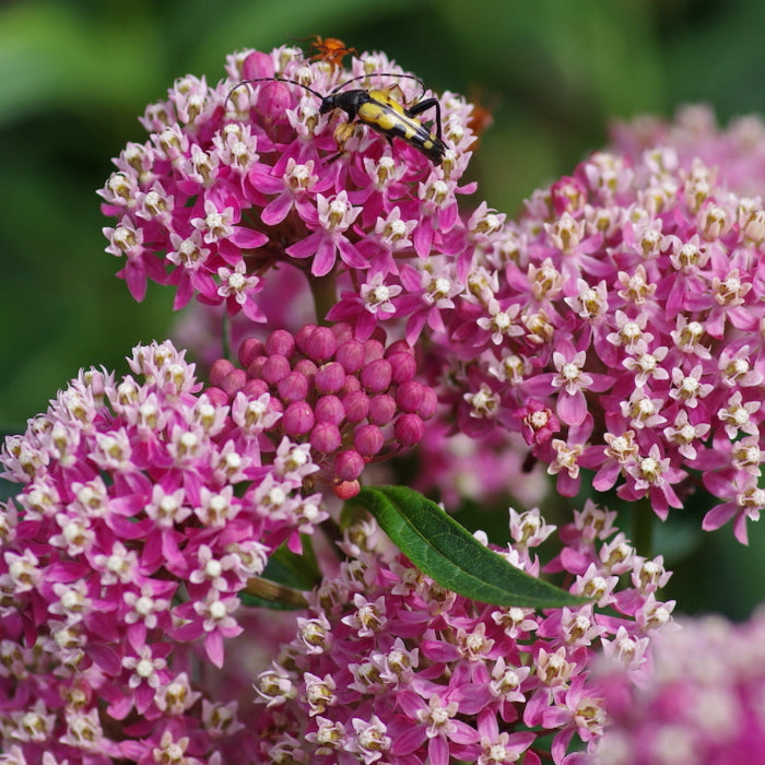 Asclepias incarnata, commonly known as Swamp Milkweed, is a native perennial valued for its clusters of pink to rose-colored flowers that attract butterflies, bees, and other pollinators. This variety thrives in moist soils and performs beautifully near ponds, rain gardens, and naturalized areas. Known for its ecological benefits, it serves as a host plant for Monarch butterfly caterpillars, making it a great addition to pollinator-friendly gardens. Asclepias incarnata adds both beauty and purpose to any landscape with its upright growth and rich nectar production.