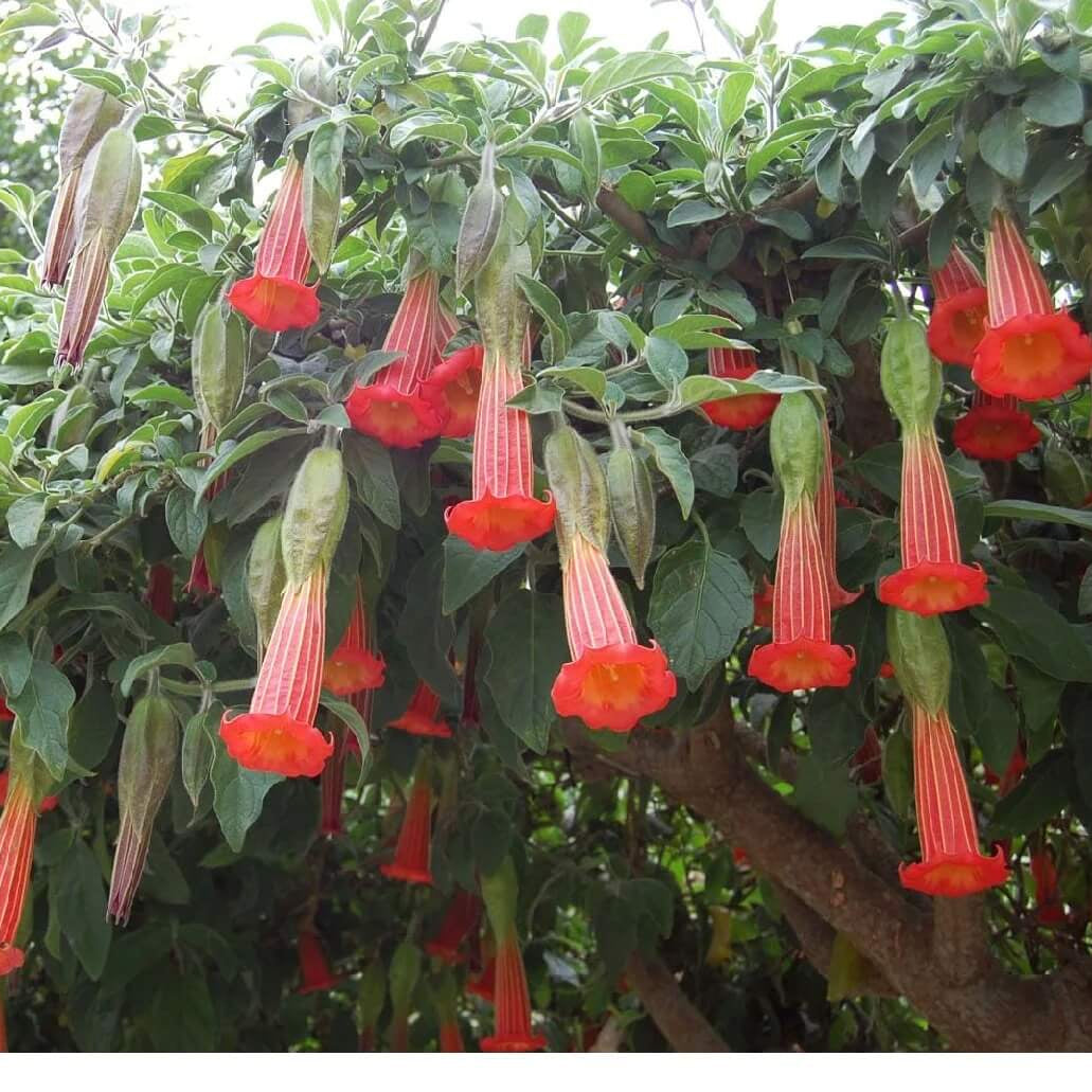 Brugmansia Sanguinea, commonly known as Red Angel’s Trumpet, is a striking ornamental plant admired for its large, trumpet-shaped red blooms with golden-yellow throats. These seeds produce elegant plants that add dramatic tropical beauty to gardens, patios, or containers. Known for their showy hanging flowers and lush green foliage, Brugmansia plants thrive in warm conditions and are ideal for creating an eye-catching landscape feature.
