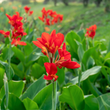 Canna Lily ‘Red’ is a striking tropical variety admired for its bold crimson blooms and lush green foliage. These plants bring a vibrant touch to gardens, patios, and water edges. Known for their heat tolerance and vigorous growth, Canna Lilies thrive in warm climates and bloom throughout the summer months. Their large, exotic flowers make them perfect for creating a dramatic focal point in landscapes or containers. Easy to grow from seed, this variety performs beautifully in full sun and well-drained soil.