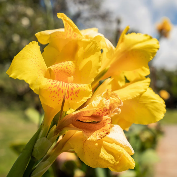 Canna Lily ‘Yellow’ is a radiant variety admired for its bold, tropical appearance and vibrant yellow blooms that add a lively touch to any garden or landscape. These showy plants feature broad, lush green leaves and tall flower spikes that bloom continuously through the warm months. Perfect for borders, containers, and water garden edges, Canna Lilies are easy to grow and thrive in sunny conditions. With their long flowering period and ornamental foliage, they make an excellent choice for creating a tropical or exotic garden look.