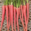 Produces rosy pink carrot roots with crisp, sweet flavor
