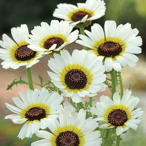 White Carinatum chrysanthemum seeds produce upright, branching annual plants with finely divided foliage and a bushy growth habit. This type is well suited to garden beds, borders, and mass plantings where uniform height and structure are desired. Chrysanthemum carinatum performs best in temperate climates and grows well during cooler portions of the growing season. Plants adapt to a wide range of soil types provided drainage is good and moisture is consistent, making them suitable for general ornamental planting.