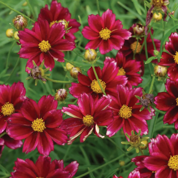 Coreopsis ‘Mercury Rising’ is a striking perennial variety admired for its deep ruby-red blooms that last throughout the summer. This compact and hardy plant provides continuous color and is an excellent choice for borders, garden beds, and containers. Its long-blooming nature and resilience make it a favorite among gardeners who want vibrant color with minimal care. The flowers attract butterflies and beneficial insects, adding both beauty and ecological balance to your garden.