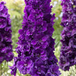 Heirloom Delphinium variety known for rich, dark-colored flower spikes