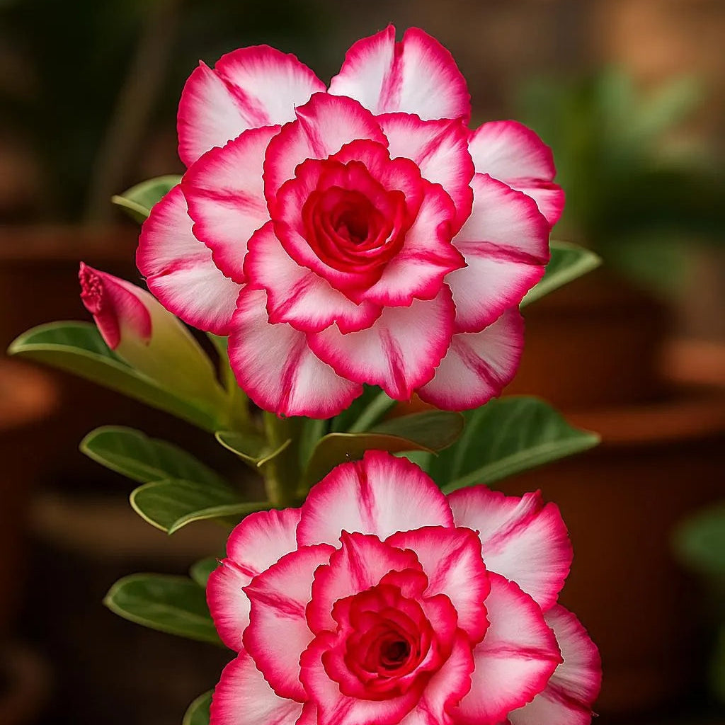 Desert Rose Seeds – Double Bloom Variety produce striking, tropical-looking plants admired for their sculptural stems and beautiful double-layered flowers. These vibrant blooms come in a range of colors from soft pinks to deep reds, creating a dramatic focal point in gardens, patios, or indoor spaces.