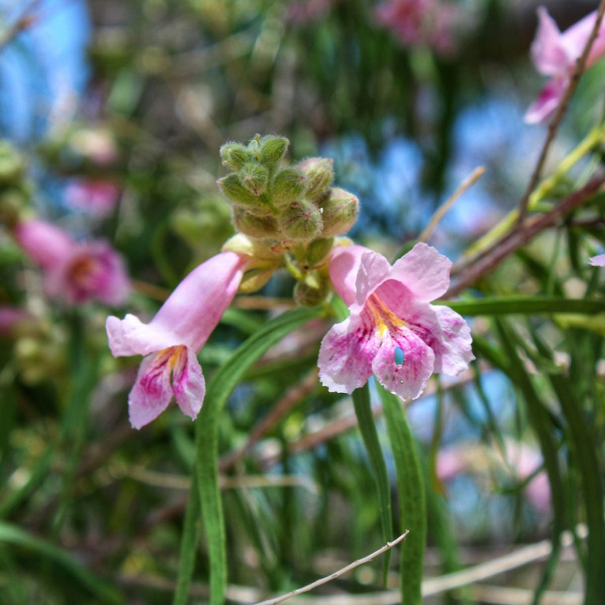 Desert Willow Seeds grow into graceful, small ornamental trees known for their trumpet-shaped flowers and fine, willow-like foliage. Native to arid regions, this plant is highly drought-tolerant and thrives in hot, dry conditions, making it ideal for xeriscaping and low-water landscapes. The fragrant flowers, typically in shades of pink, lavender, or white, bloom from late spring through fall and attract hummingbirds and pollinators.