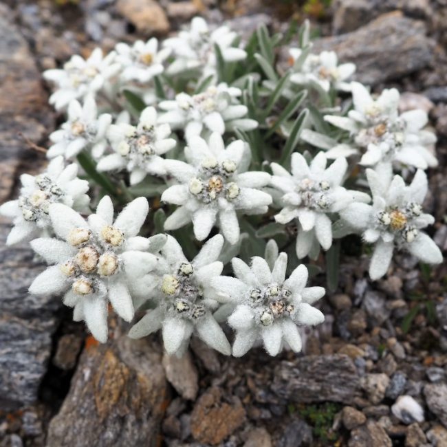 Edelweiss, also known as the “Alpine Star,” is a rare and charming mountain perennial admired for its soft, white, star-shaped blooms and silvery-green foliage. Native to the European Alps, Edelweiss symbolizes purity and strength. It thrives in cooler climates and rocky, well-drained soils, making it a perfect choice for rock gardens, alpine settings, and containers. This plant is low-maintenance, drought-tolerant, and ideal for gardeners who appreciate unique and hardy blooms that stand out in summer landscapes.