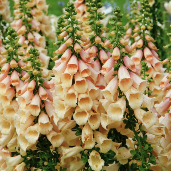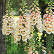 Foxglove ‘Peach’ is a graceful and elegant variety known for its tall spikes covered in soft peach-colored, bell-shaped blooms. These beautiful flowers create a romantic and cottage-style look in gardens, adding vertical interest to borders and mixed beds. Foxgloves are biennial plants that bloom in their second year, attracting bees, butterflies, and hummingbirds. Ideal for partial shade to full sun, they thrive in cool to moderate climates and produce striking floral displays throughout late spring to early summer.
