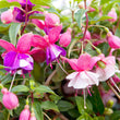 Produces a mix of colorful, pendulous blooms in shades of pink, red, purple, and white.