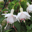 Produces elegant white fuchsia blooms