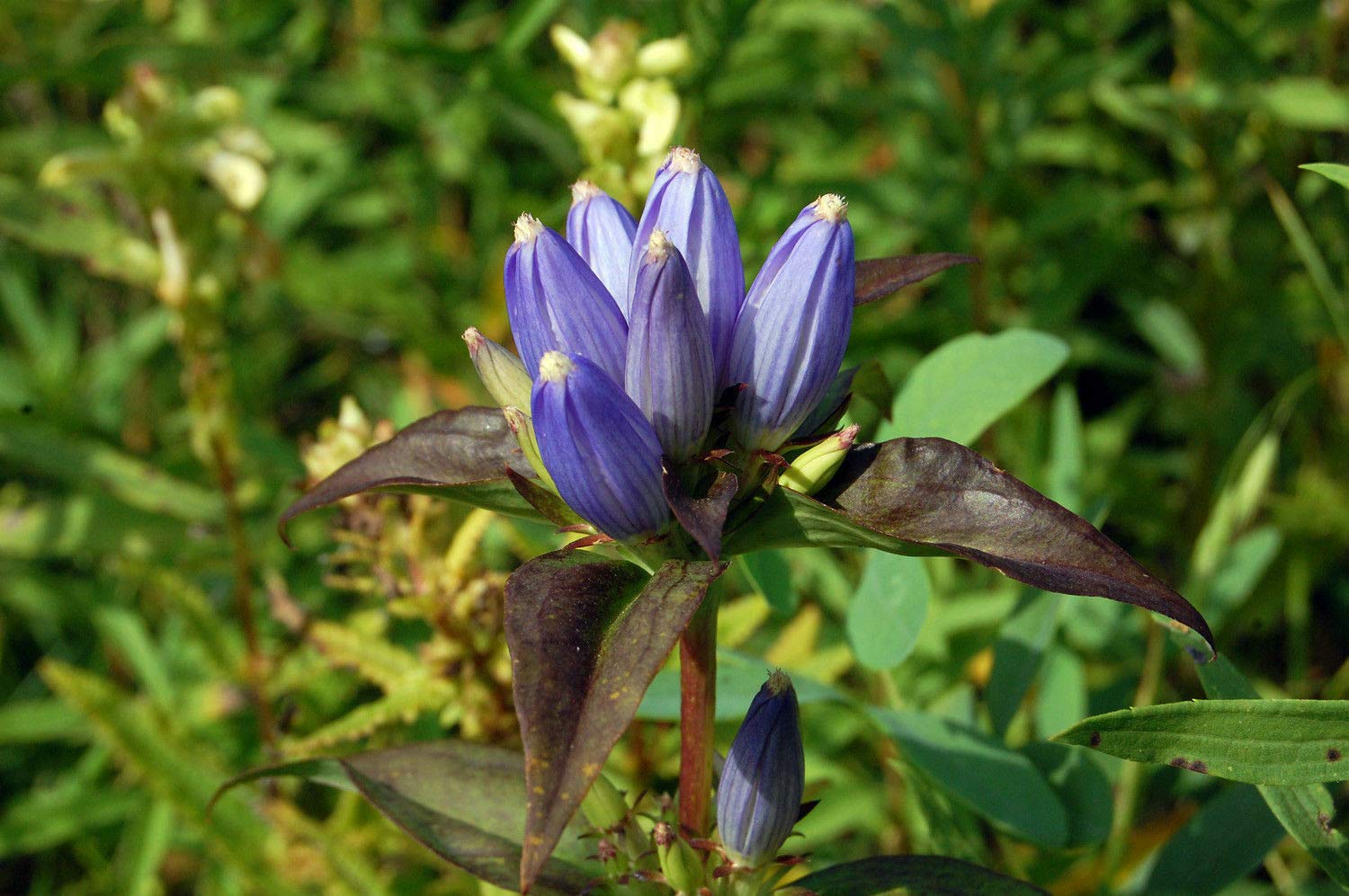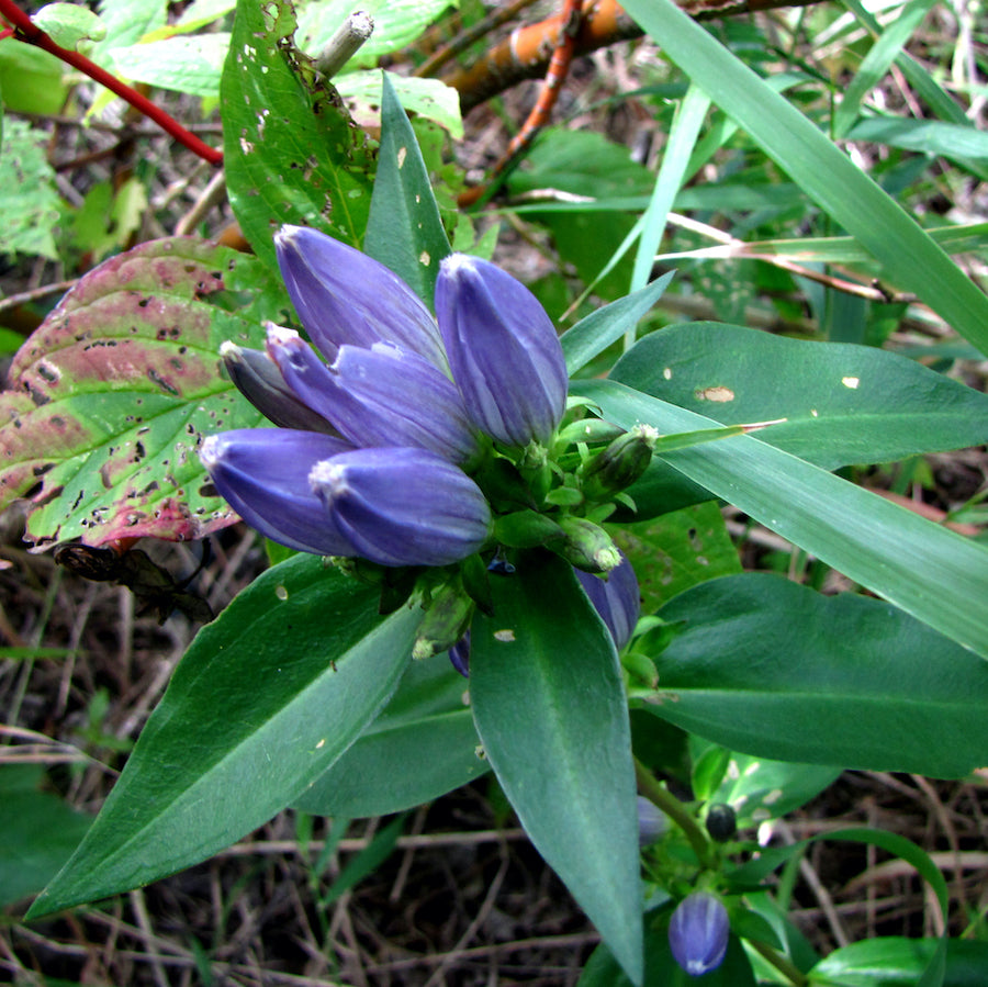 Bottle Gentian, also known as Gentiana andrewsii, is a striking perennial plant known for its unique, closed, bottle-shaped blue blooms. These flowers add a bold accent to late-season gardens, as they typically bloom in late summer through fall. Gentians are excellent for naturalistic plantings, pollinator-friendly gardens, and borders. Their unusual blossoms remain tightly closed, creating an eye-catching contrast to more common garden flowers.