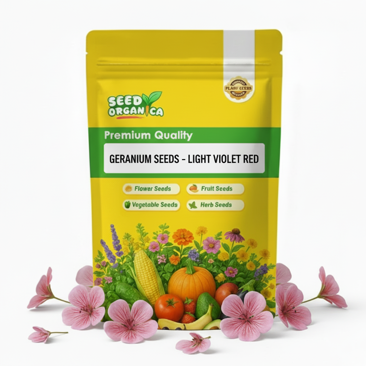 Light Violet Red geranium seeds produce compact, upright plants commonly grown as warm-season annuals. Plants develop sturdy stems, rounded foliage, and a neat, mounded growth habit, making them suitable for garden beds, borders, containers, and patio planting. This variety performs best in mild to warm climates with consistent sunlight and good air circulation. Light Violet Red geraniums adapt well to a range of growing conditions when planted in well-drained soil and provided regular, moderate watering, making them suitable for home and small-scale ornamental planting.