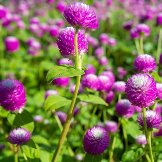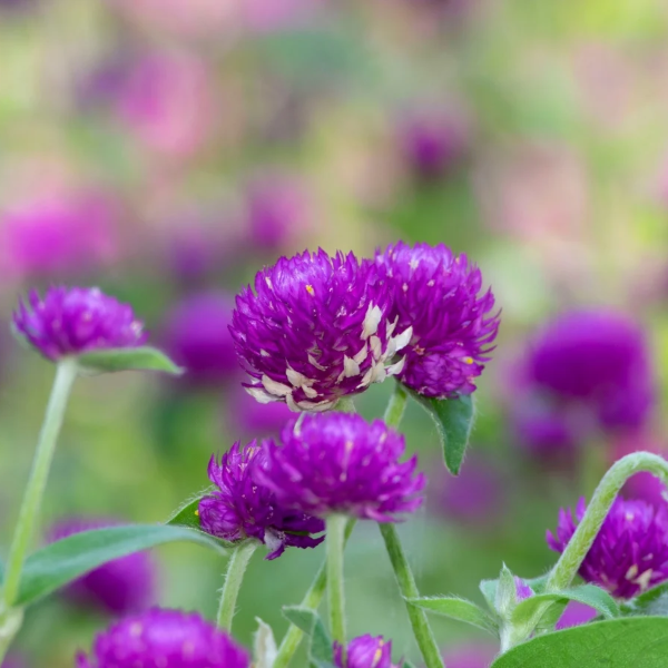 Gomphrena ‘Purple Globe Amaranth’ is a vibrant and easy-to-grow annual known for its striking, clover-like purple blooms. These globe-shaped flowers retain their color and shape even after drying, making them excellent for both fresh and dried floral arrangements. Highly tolerant to heat and drought, this variety blooms continuously from summer to frost, providing a long season of color in garden beds, borders, and containers. Its compact growth and bright flowers also attract pollinators such as butterflies and bees, enhancing any garden landscape.