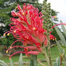 Produces attractive red grevillea blooms with elegant, feathery foliage