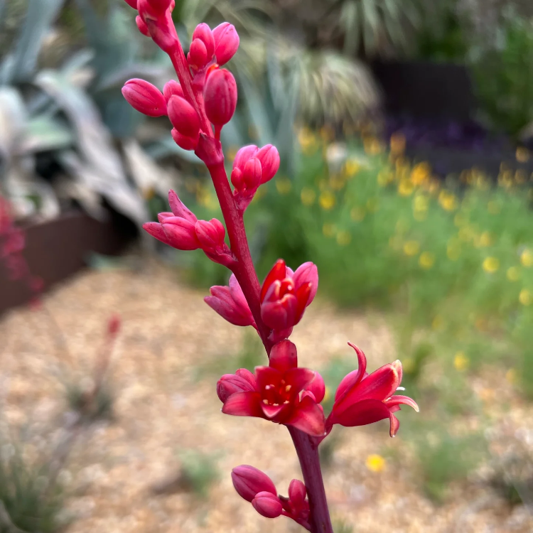 Hesperaloe parviflora, commonly known as Red Yucca in the U.S., is a hardy and drought-tolerant perennial known for its graceful, arching foliage and tall flower spikes. These plants produce tubular red to coral-pink flowers that attract hummingbirds and pollinators throughout the warm months. Perfect for xeriscaping, rock gardens, and low-water landscapes, Hesperaloe thrives in hot, sunny climates and requires minimal maintenance once established. Its evergreen leaves and vibrant floral display make it a popular choice for ornamental gardens.