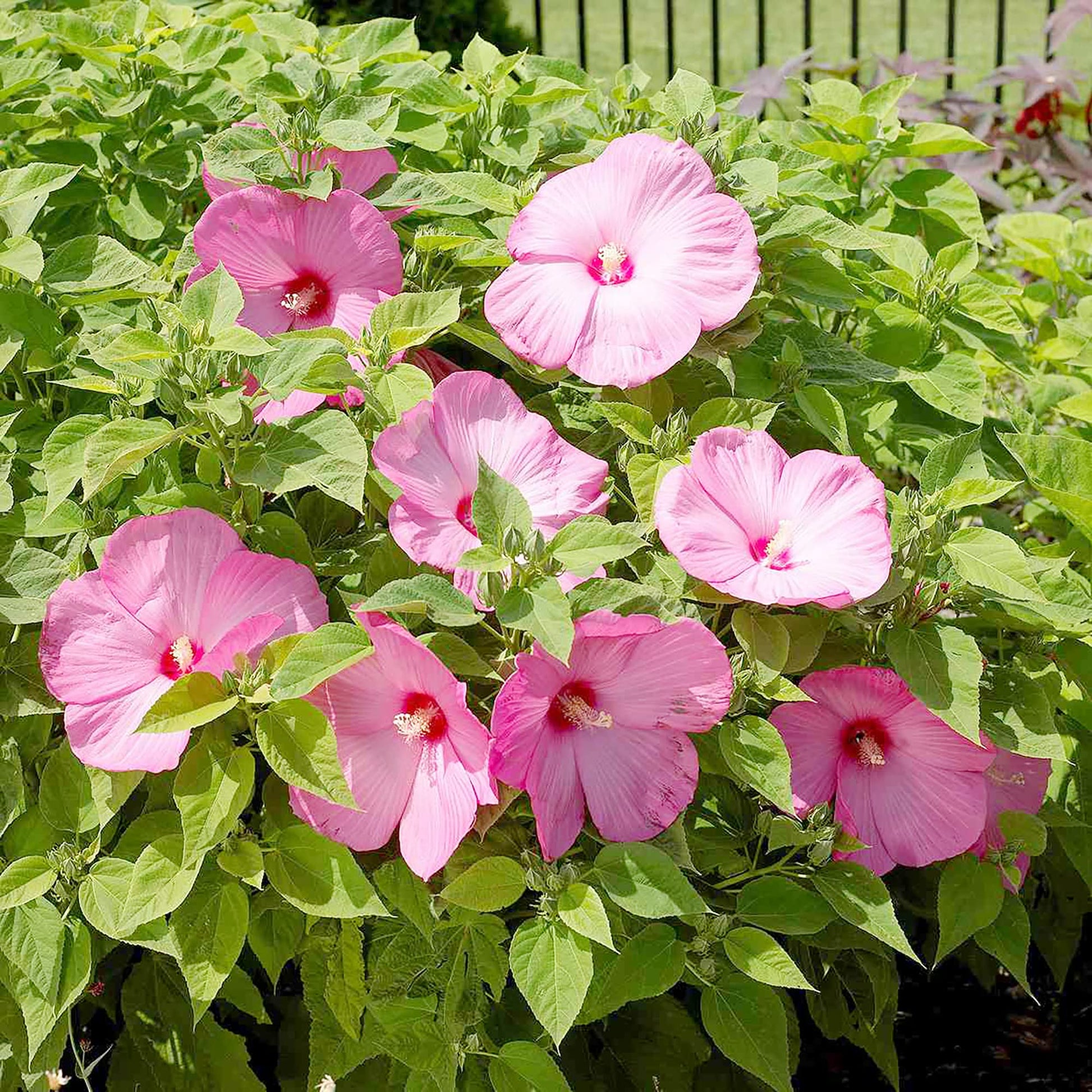 Produces enormous, pink dinner plate-sized blooms up to 10 inches wide.