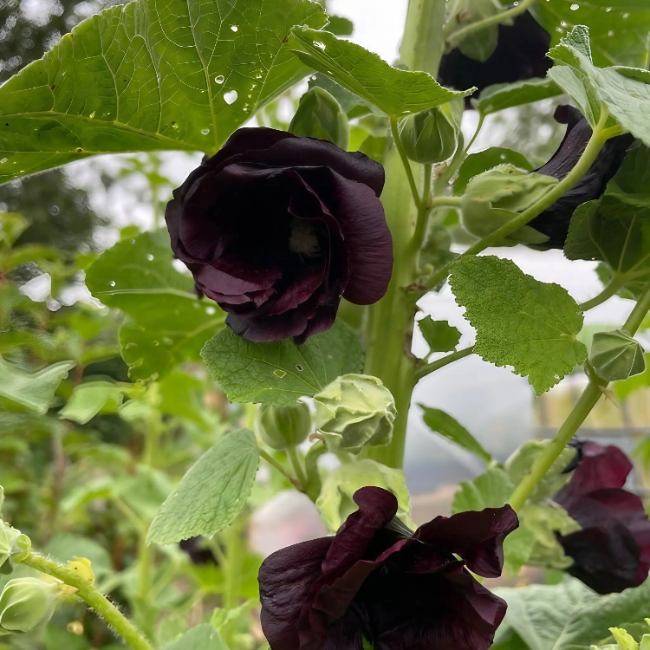 Hollyhock ‘Black Prince’ is a striking variety admired for its deep maroon, almost black, velvety blooms that create a bold and elegant statement in any garden. Known for its tall flower spikes and abundant blossoms, this heirloom variety adds dramatic vertical interest to borders, fences, and cottage-style gardens. Easy to grow and low maintenance, Hollyhocks are loved by pollinators and ideal for creating a vintage or classic floral display throughout the summer months.