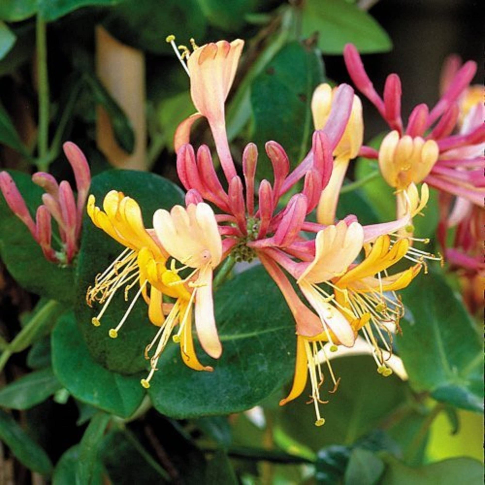 Produces vivid pink and golden-yellow tubular flowers with a pleasant fragrance.