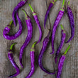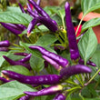 Produces slender peppers that change color from purple to red