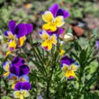 Produces vibrant mixed-colored flowers in shades of purple, yellow, and white