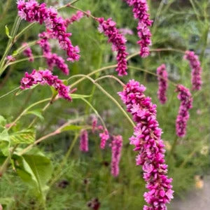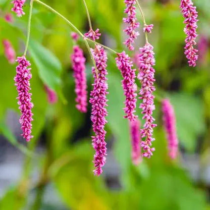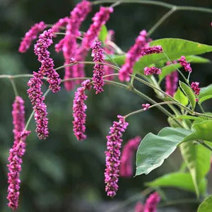Kiss-Me-Over-The-Garden-Gate (Polygonum orientale) is a tall, elegant annual known for its cascading clusters of pink blossoms and lush green foliage. This classic heirloom plant adds vertical beauty to gardens, borders, and cottage landscapes. It thrives in warm weather and attracts butterflies and pollinators, making it an excellent choice for eco-friendly gardeners.