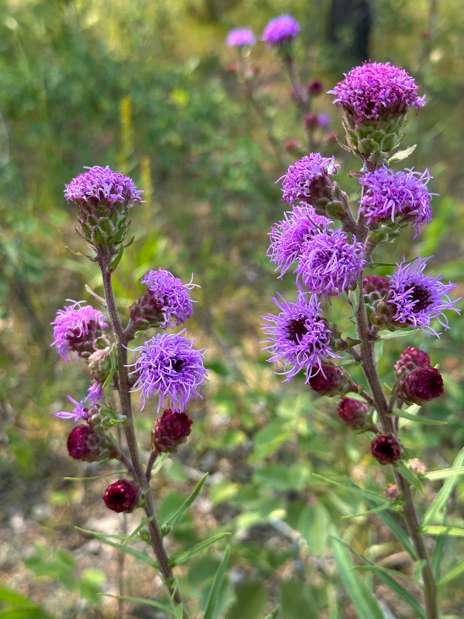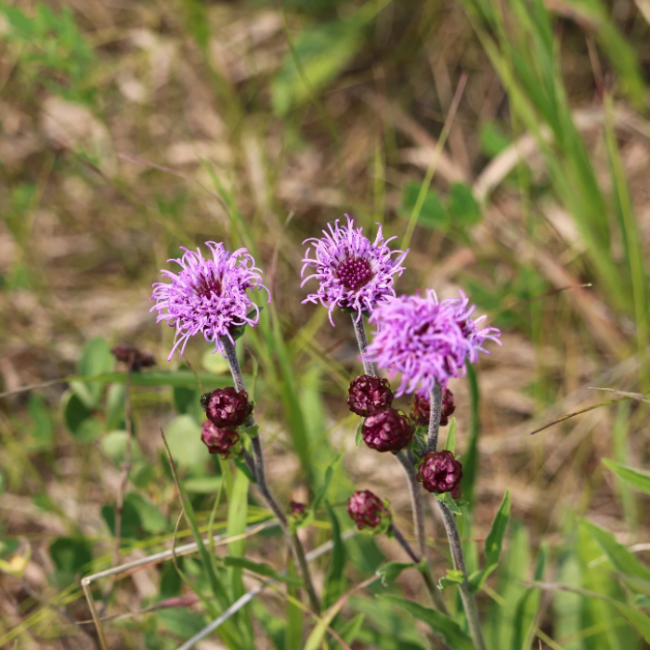 Liatris Ligulistylis, also known as the Meadow Blazing Star, is a striking perennial admired for its tall spikes of vivid purple-pink blooms. These flowers are particularly known for attracting butterflies, especially monarchs, making them a favorite addition to pollinator-friendly gardens. Liatris grows well in sunny areas with well-drained soil and provides a beautiful vertical accent in flower beds, borders, and naturalized landscapes. Once established, it is drought tolerant and low maintenance, offering a reliable display of color year after year.