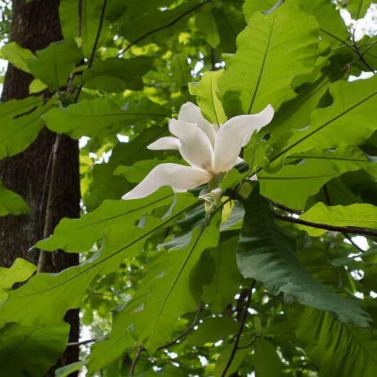 The Big Leaf Magnolia is valued for its broad, green leaves that can reach up to 30 inches long and its creamy, cup-shaped flowers that bloom in late spring to early summer. It’s ideal for gardeners looking to create a natural focal point or a shade-friendly landscape addition.