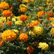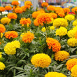 Produces large, double blooms in mixed vibrant shades of yellow, orange, and gold