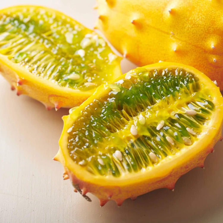 Grow exotic and visually striking Yellow Kiwano melons from these premium-quality seeds. Also known as horned melons, this unique heirloom variety produces oval fruits with spiky golden-yellow skin and refreshing, mildly sweet, jelly-like flesh. Yellow Kiwano melons thrive in warm climates, full sunlight, and well-drained soil. With strong germination and vigorous growth, this variety offers gardeners an unusual and rewarding harvest.