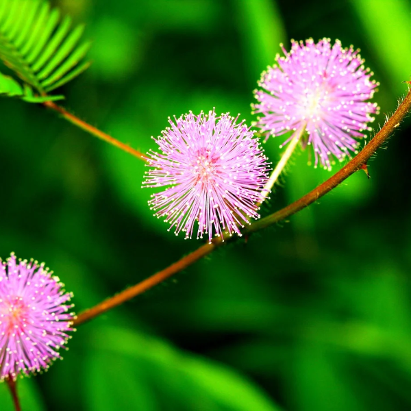 Mimosa Pudica, also known as the Sensitive Plant, is a unique ornamental plant admired for its fascinating foliage that folds inward when touched. This plant is perfect for adding an interactive and exotic touch to gardens, containers, and indoor displays. Its delicate leaves and small pink puffball blooms make it an eye-catching addition to any collection.
