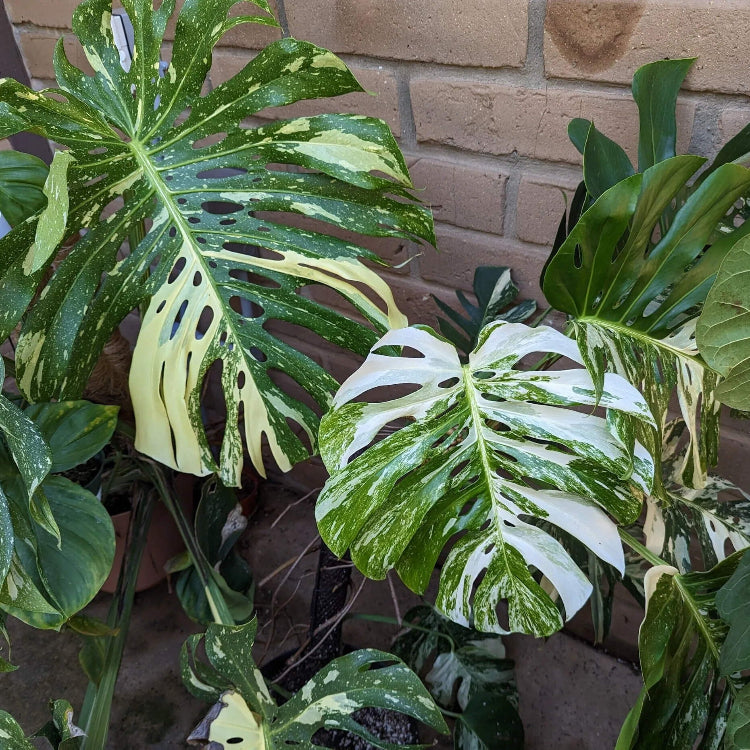 The Monstera Thai Constellation is a stunning tropical variety admired for its striking cream-and-green variegated leaves. Each leaf displays a unique marbled pattern, adding elegance to indoor spaces. Perfect for plant enthusiasts, this easy-to-grow Monstera variety thrives in warm, humid conditions and indirect light, creating a captivating focal point in any home or greenhouse.