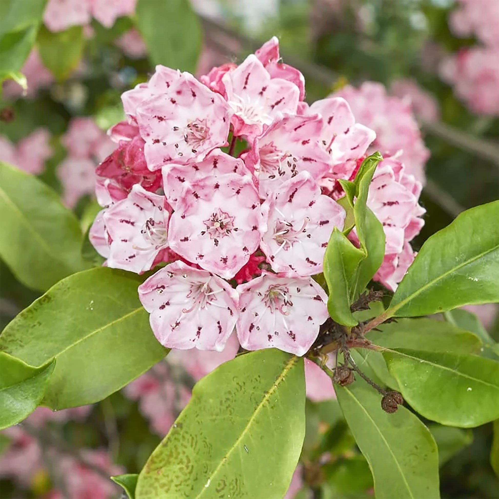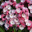 Mountain Laurel (Kalmia latifolia) is a remarkable evergreen shrub admired for its glossy foliage and clusters of pink to white blossoms that appear in late spring to early summer. Known for its ornamental appeal and adaptability, it thrives in woodland gardens, borders, and naturalized landscapes. This hardy shrub brings year-round greenery and stunning seasonal color, making it a favorite among home gardeners and landscape designers.