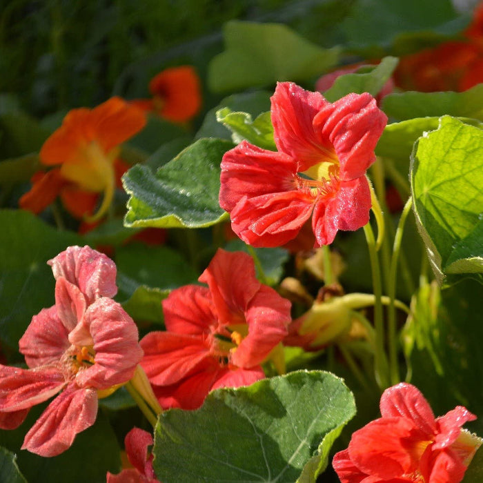 Cherry Rose Jewel Nasturtium Seeds produce vibrant, rose-pink blossoms with a soft, jewel-like sheen that bring a striking pop of color to gardens and containers. These fast-growing annuals are known for their lush, rounded foliage and their ability to thrive in poor soils with minimal care. Perfect for borders, hanging baskets, and companion planting, Nasturtiums are appreciated for their ornamental beauty and resilience in warm climates.