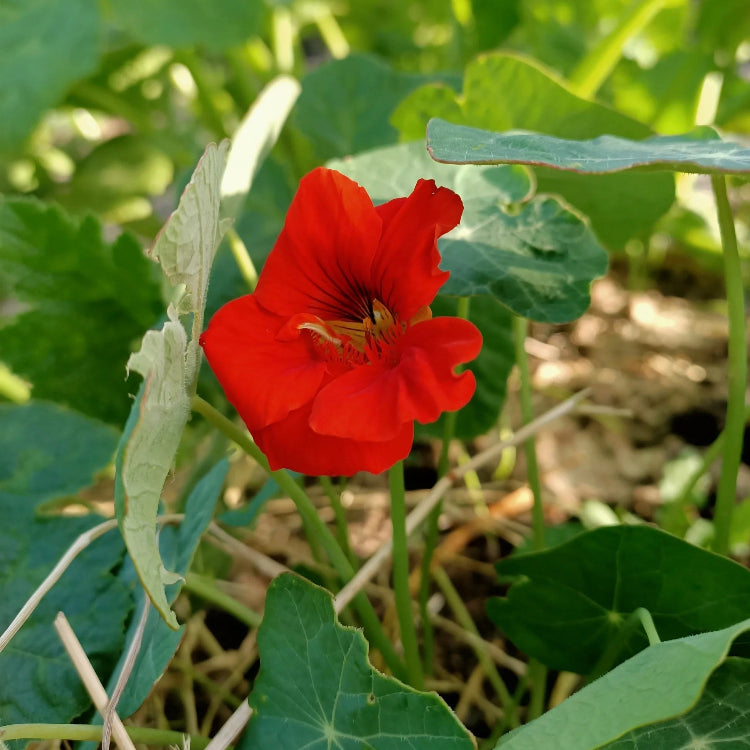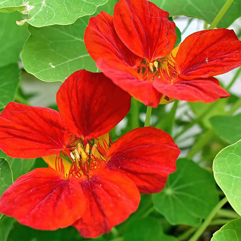 Nasturtium Seeds – Red Variety produce vibrant, red-colored blooms that add a bold splash of color to any garden. Known for their striking round leaves and trumpet-shaped flowers, nasturtiums are a gardener’s favorite for their beauty and ease of growth. These hardy plants can thrive in a variety of conditions and are perfect for borders, hanging baskets, and garden beds.