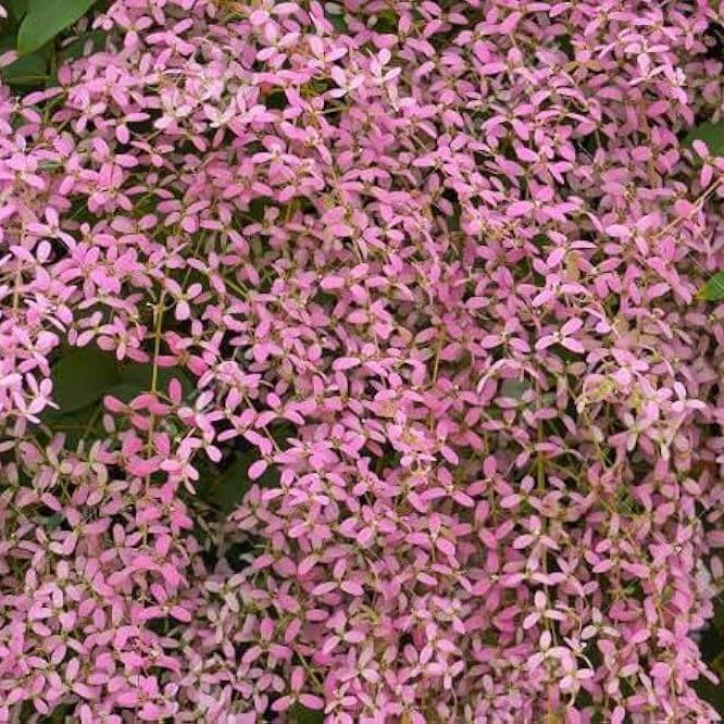 Produces cascading clusters of pastel bracts resembling orchid flowers