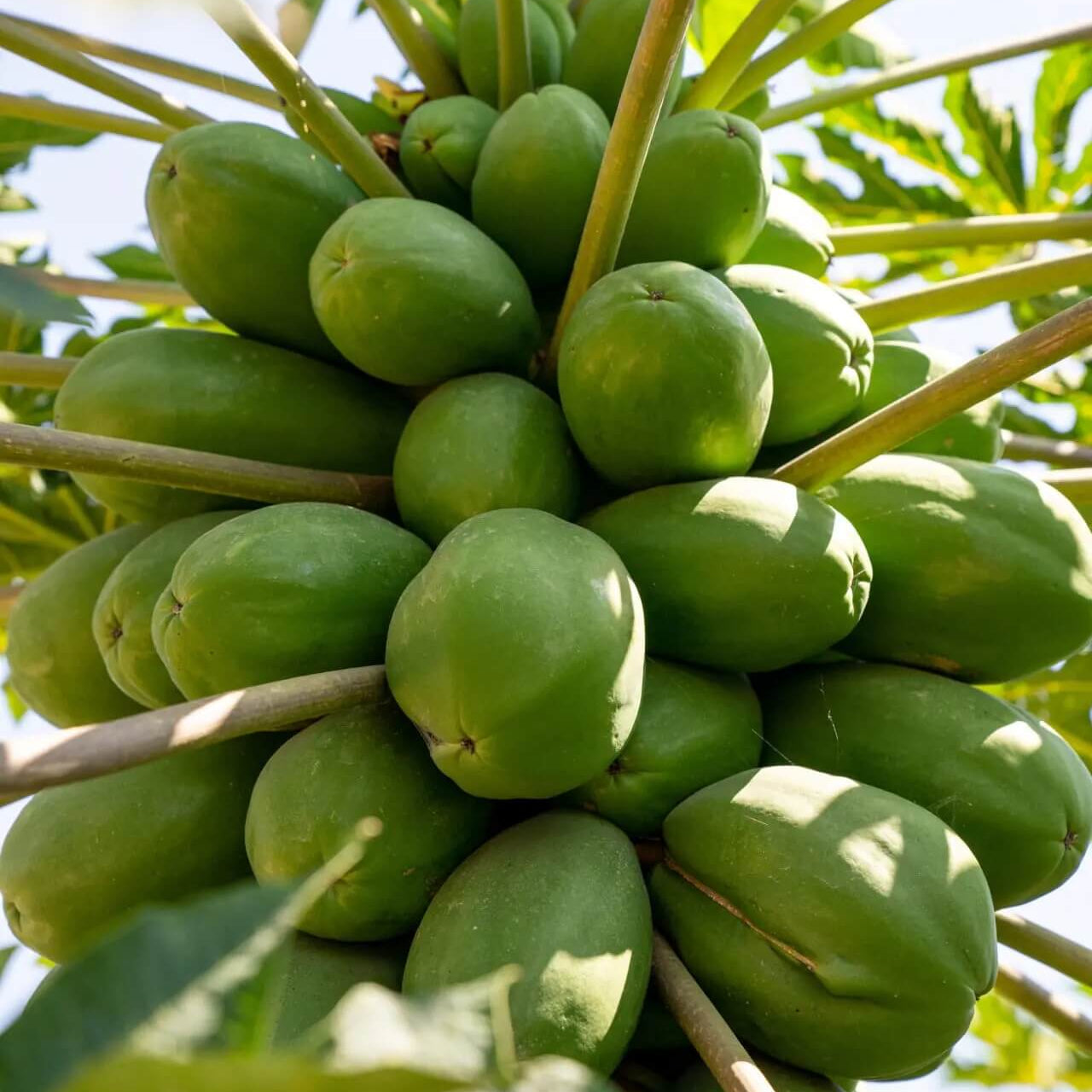 Papaya plants mature quickly and can bear fruit within a year under favorable conditions. The fruits are enjoyed fresh or used in a wide range of culinary dishes, while the plants also add an exotic appeal to any garden space.