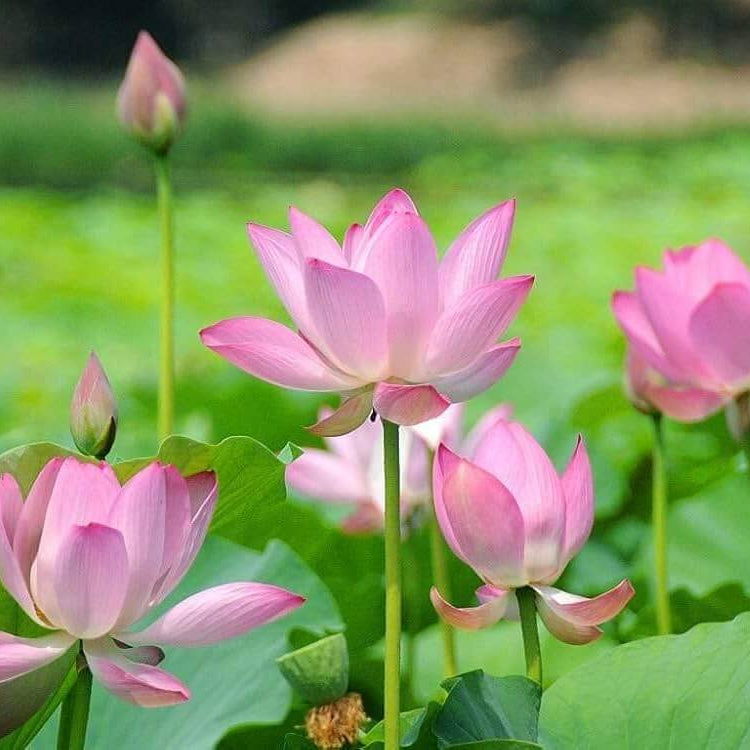 Produces elegant, soft pink lotus flowers with large, showy petals.