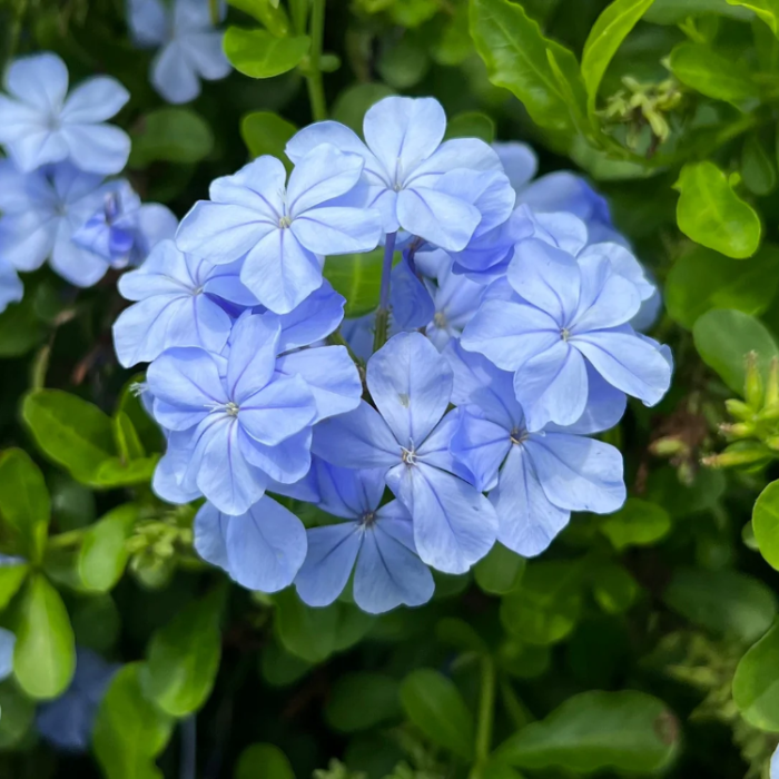 Plumbago ‘Blue’ is a charming perennial known for its sky-blue flower clusters that bloom abundantly throughout warm seasons. These vibrant blossoms create a soft, soothing effect in gardens and landscapes. Native to warm climates, Plumbago is valued for its versatility, thriving in both garden beds and containers. Its dense foliage and consistent flowering make it a favorite choice for borders, hedges, and trellises. Easy to grow and maintain, this plant adds a refreshing touch of color to any outdoor setting.