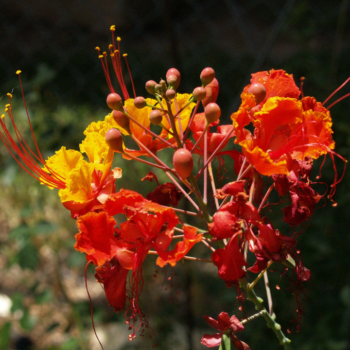 Bring vibrant tropical beauty to your garden with Pride of Barbados (Caesalpinia pulcherrima), also known as the Red Bird Flower. This striking plant is admired for its fiery red-orange blossoms accented with long, elegant stamens. Perfect for adding bold color to borders, landscape focal points, or large containers, the Pride of Barbados thrives in warm climates and is valued as a long-blooming ornamental.