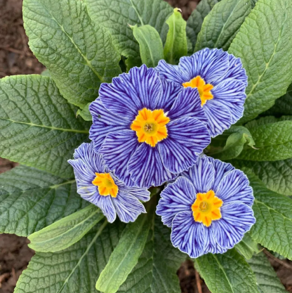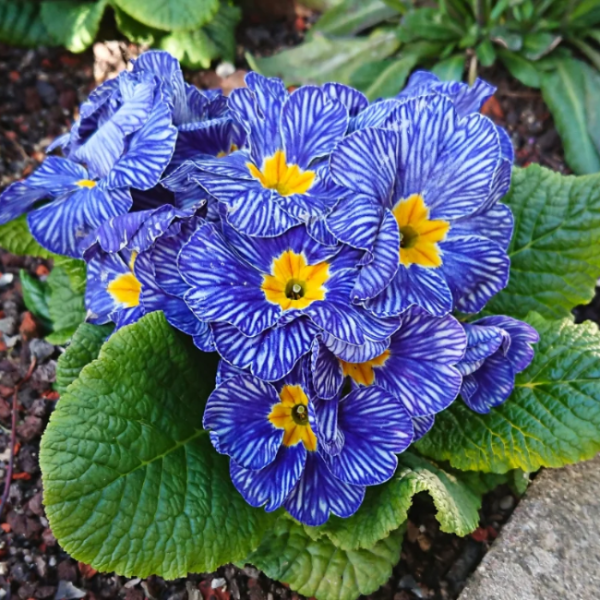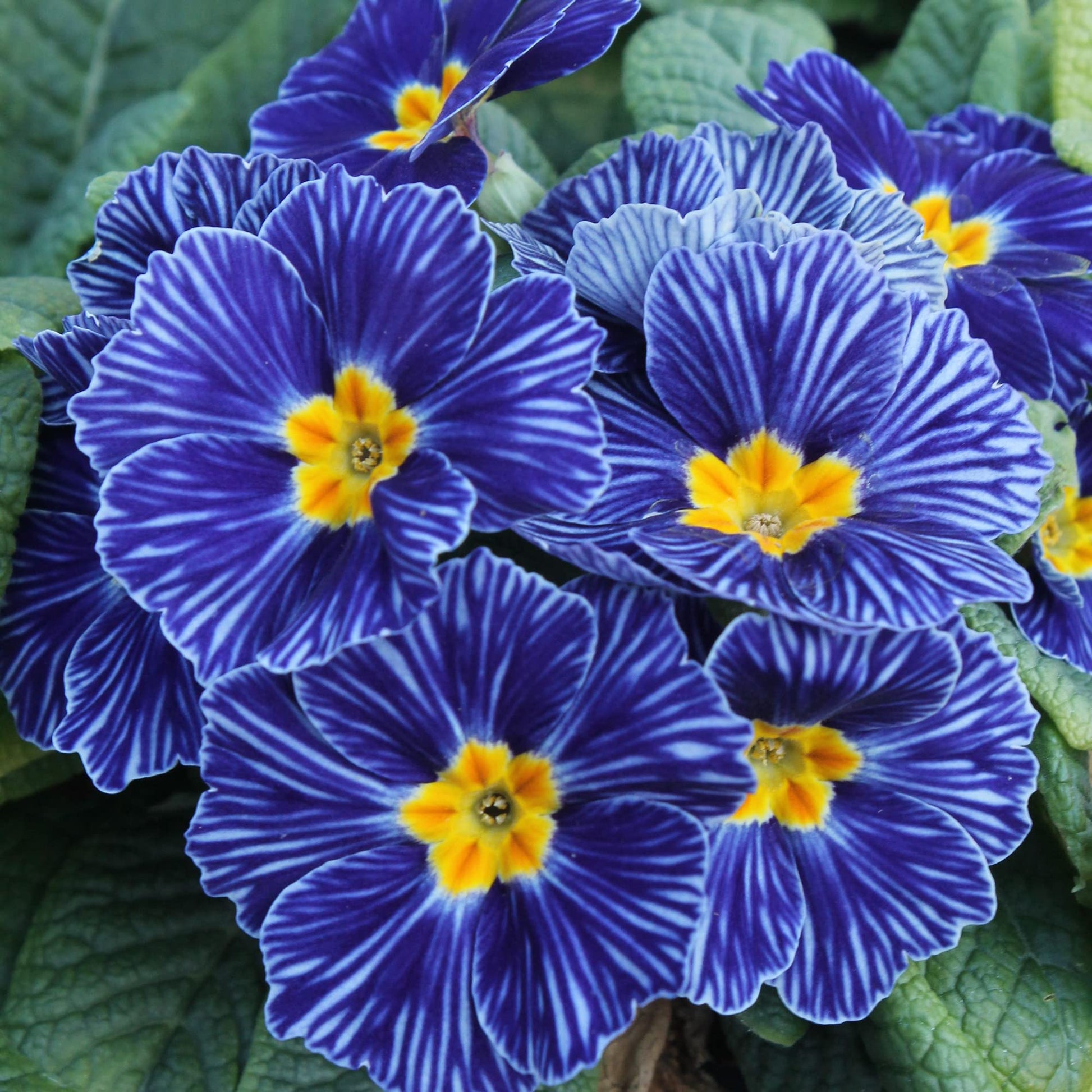 Primula ‘Zebra Blue’ is a stunning variety known for its intricate blue and white striped petals and compact growth habit. These vibrant blooms create a striking display in early spring gardens, containers, or borders. The flowers feature a unique veined pattern that makes them stand out among other primrose varieties. Easy to grow and adaptable to various soil types, this variety thrives in cool weather and partial shade, adding a refreshing burst of color to your garden at the start of the growing season.