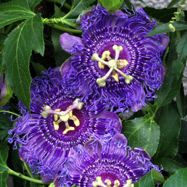Produces striking purple, star-shaped blooms with intricate filaments.