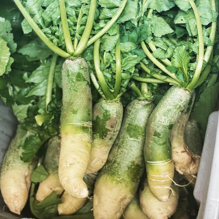 Green Radish Seeds produce unique green-skinned radishes with crisp white flesh and a mildly spicy flavor. This visually striking variety is well-suited for vegetable gardens, raised beds, and containers. Known for its firm texture and reliable growth, green radish is an excellent choice for gardeners seeking something different from the classic red radish varieties.