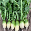 Produces smooth, green-skinned radishes with white flesh
