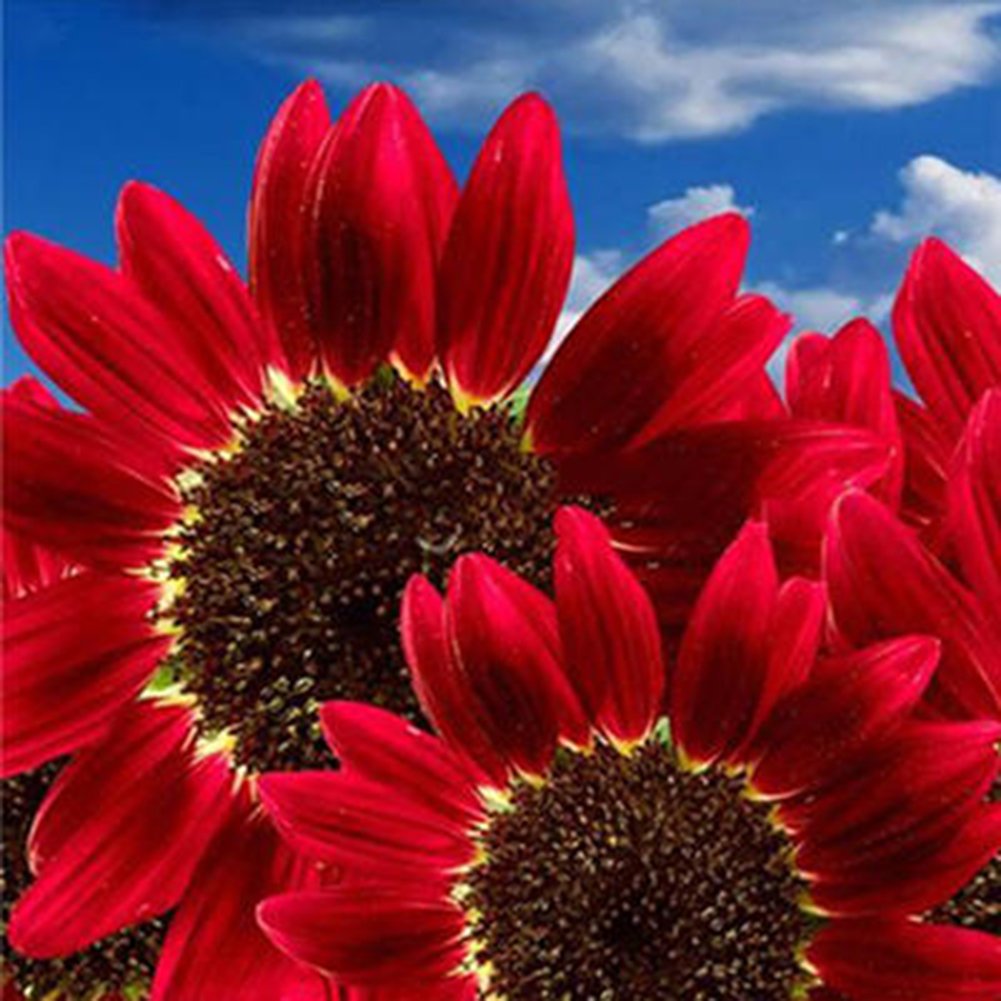 Grow vibrant, bold red sunflowers that make a striking addition to any garden or landscape. These sunflowers are easy to cultivate and thrive in a variety of conditions, making them perfect for gardeners of all levels. With their rich red petals and tall stems, they add both beauty and pollinator-friendly benefits to your outdoor space.