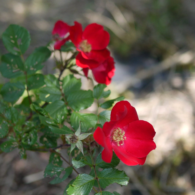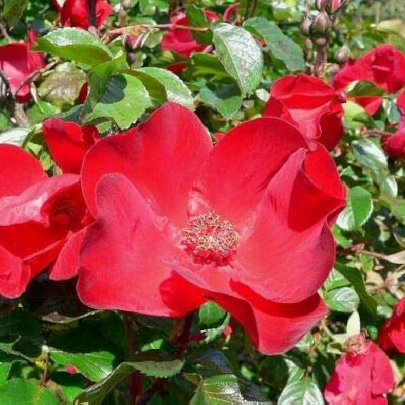 Produces vibrant red, fragrant flowers with repeat blooming throughout summer.