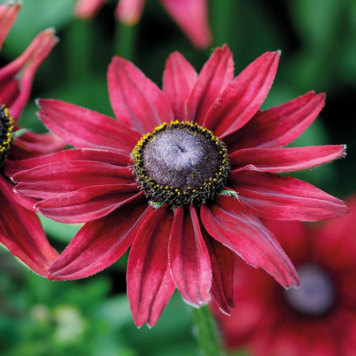 Rudbeckia ‘Cherry Brandy’ is a striking variety of the beloved Black-Eyed Susan family, admired for its deep cherry-red blooms with dark centers. Unlike traditional yellow Rudbeckias, this unique cultivar brings a bold touch of color to gardens and floral arrangements. It thrives in full sun, tolerates heat well, and blooms continuously from midsummer to fall. Perfect for borders, cottage gardens, or as a standout feature in containers, Rudbeckia ‘Cherry Brandy’ adds long-lasting beauty and attracts pollinators such as butterflies and bees.